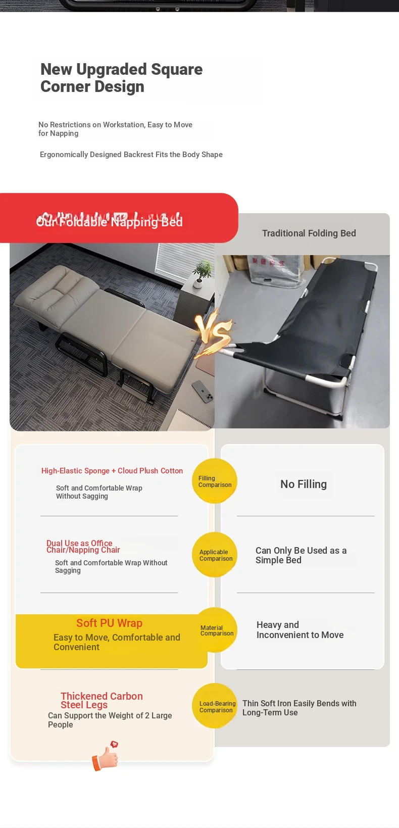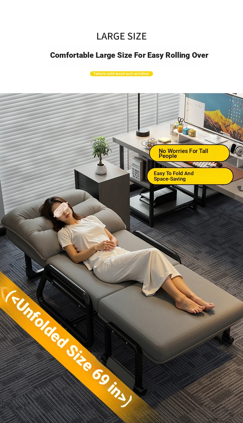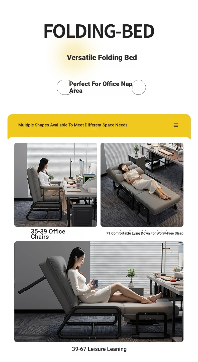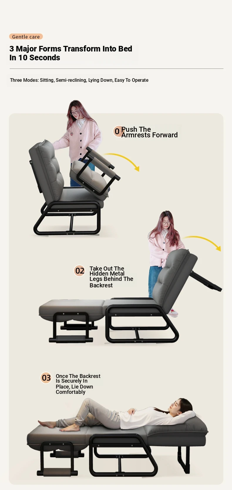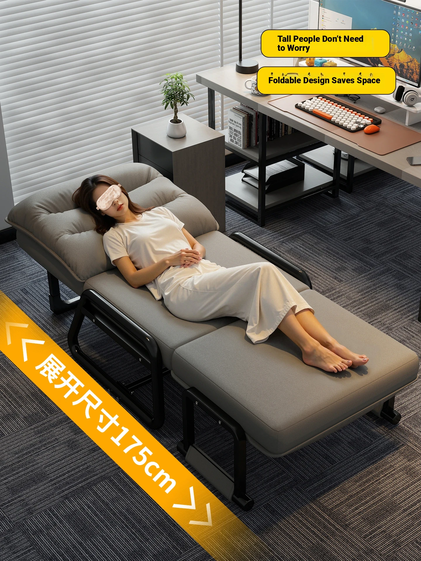 2-in-1 Folding Bed for Office Naps - Single Sleeper Sofa Chair, Perfect for Sitting or Lying Down, Ideal Portable Computer Folding Chair for Relaxation and Comfort.