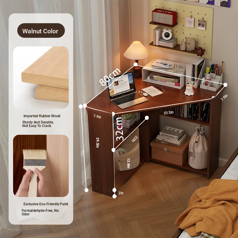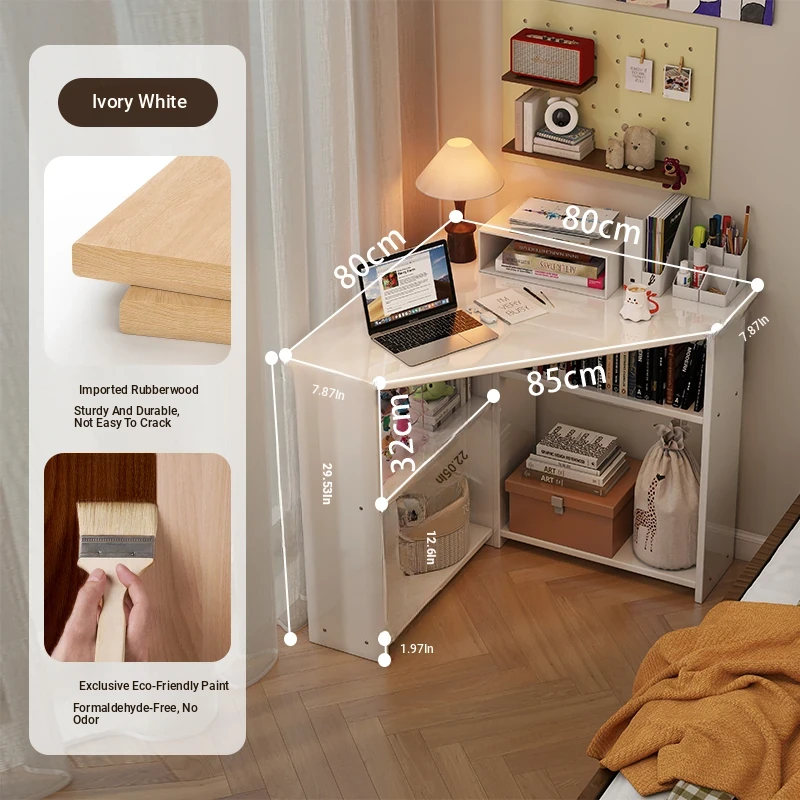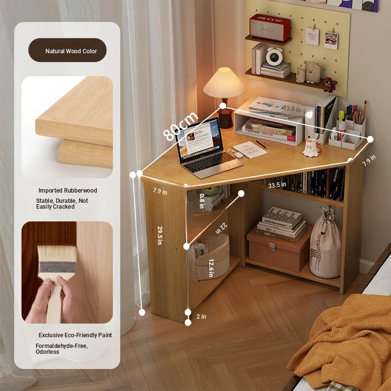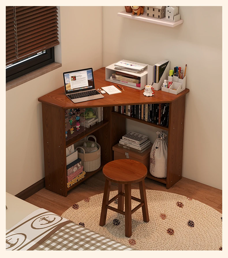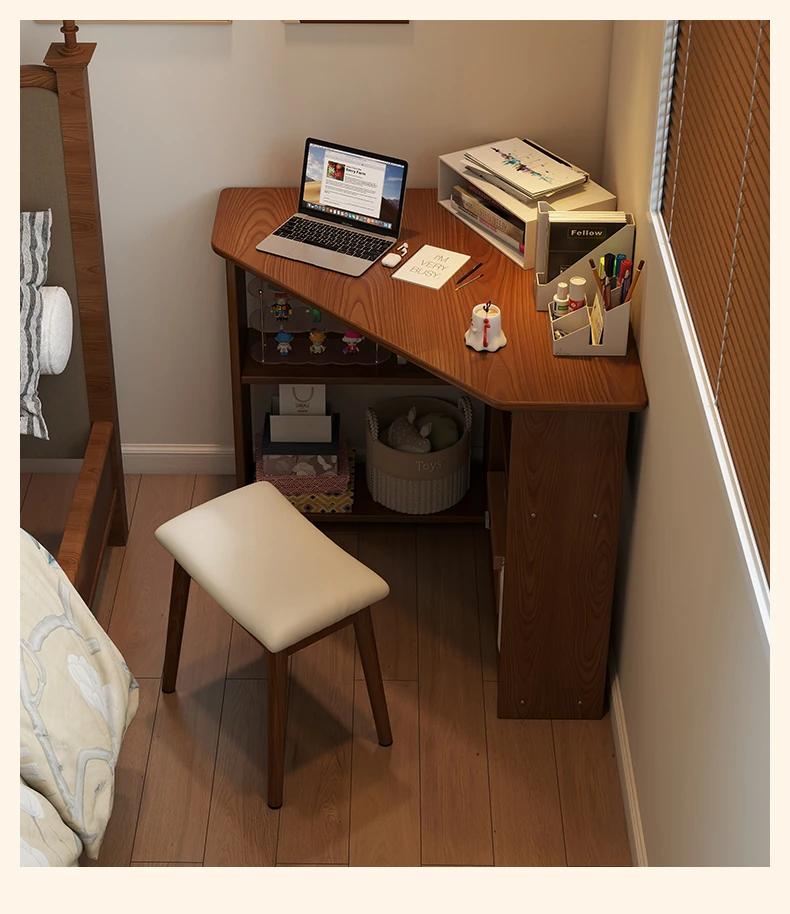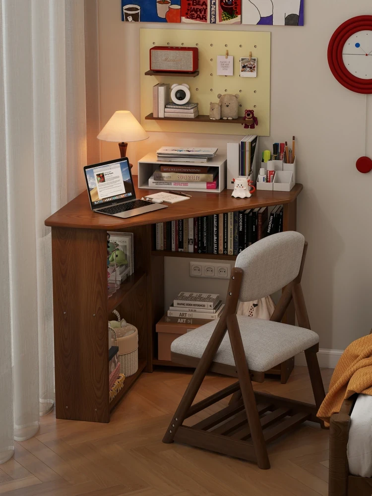 Corner Solid Wood Writing Desk for Bedroom - Space-Saving Student Study Table, Ideal for Small Homes and Offices, Perfect Computer Desk for Efficient Work and Study.