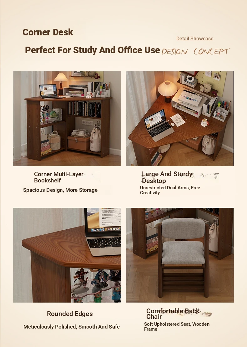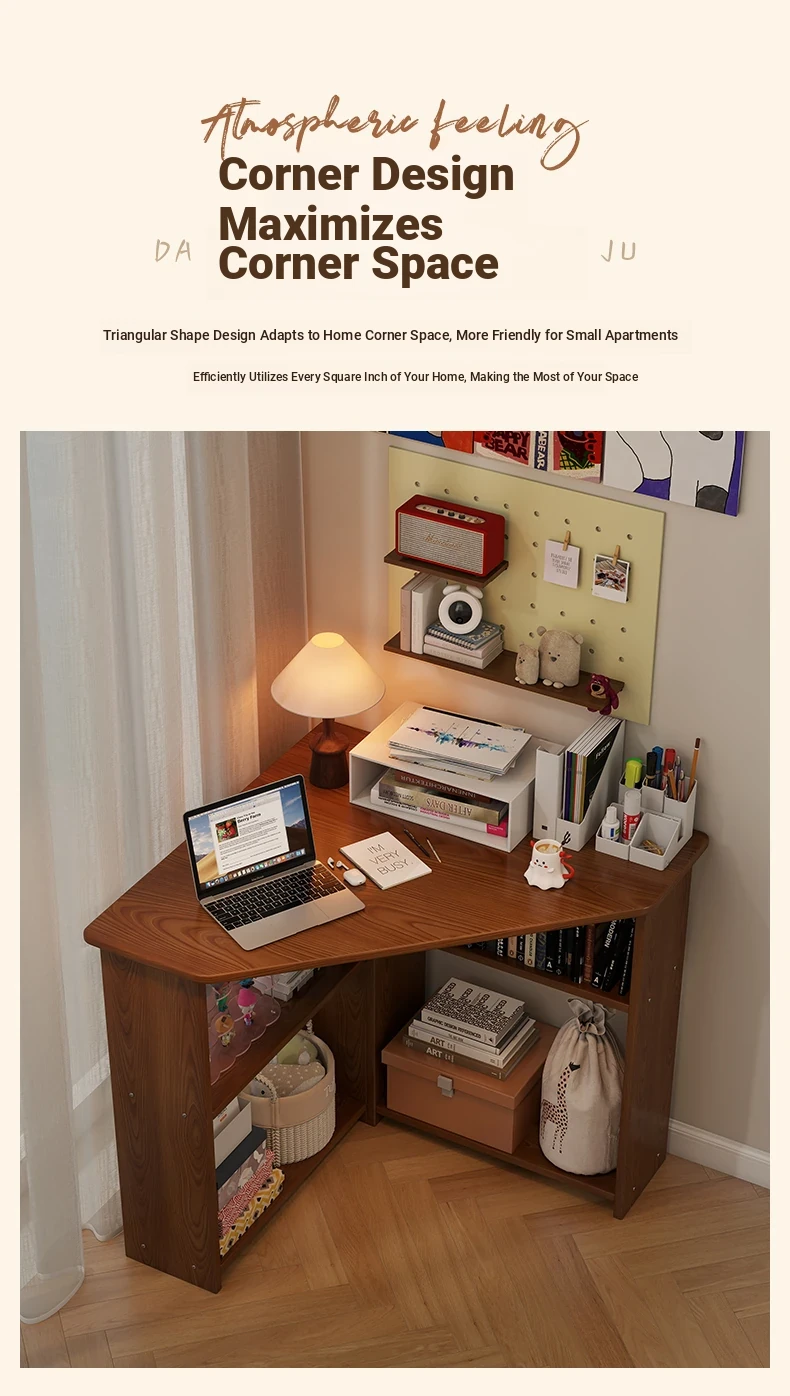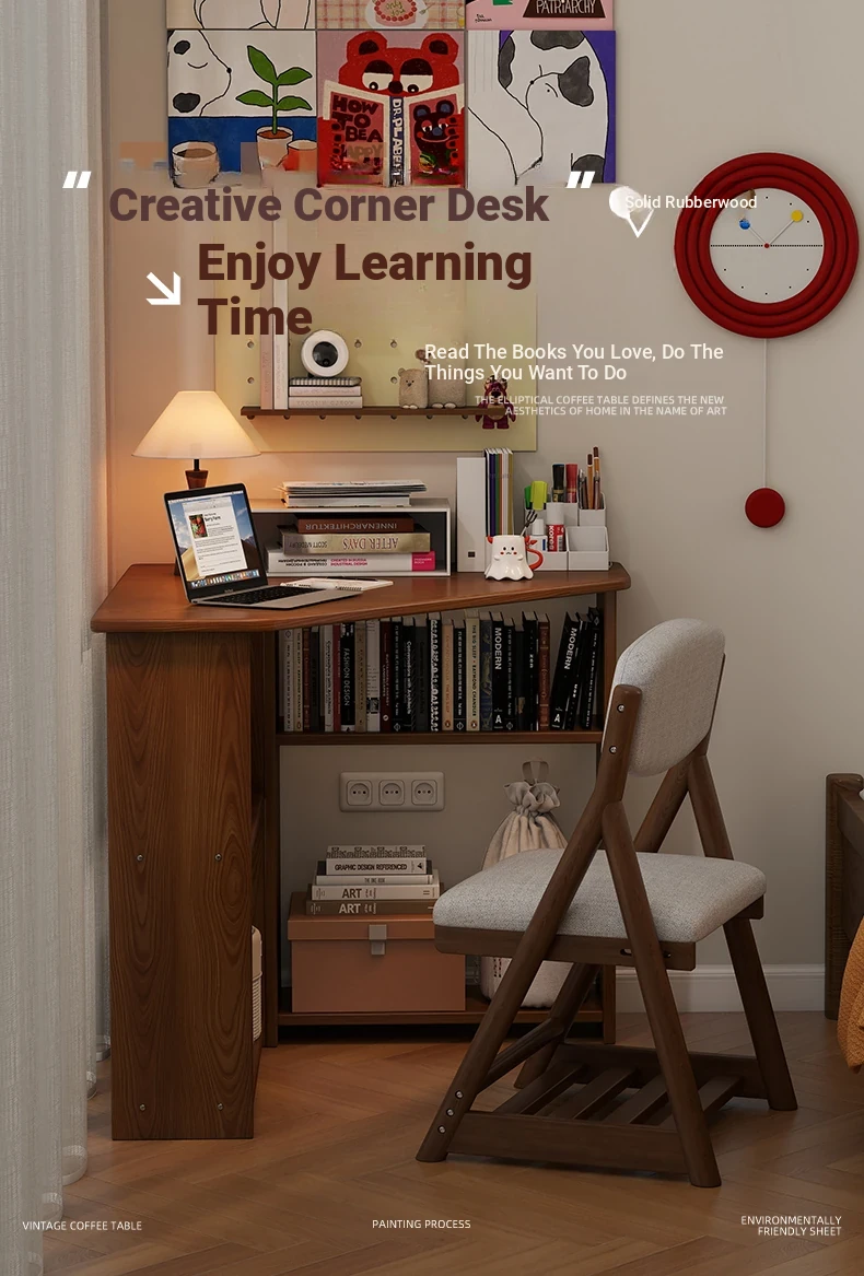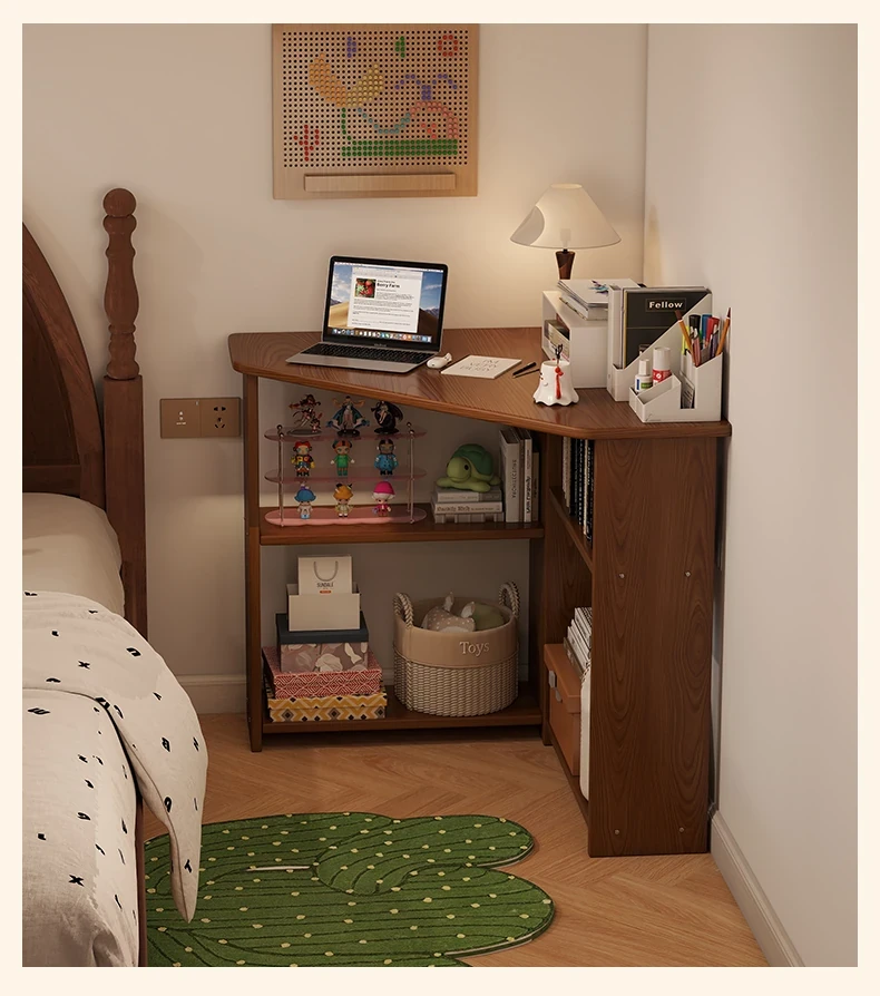Corner Solid Wood Writing Desk for Bedroom - Space-Saving Student Study Table, Ideal for Small Homes and Offices, Perfect Computer Desk for Efficient Work and Study.