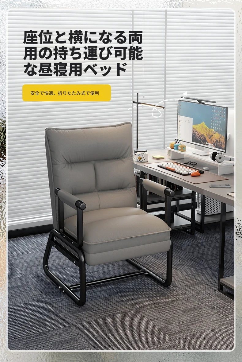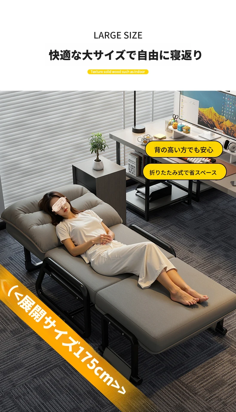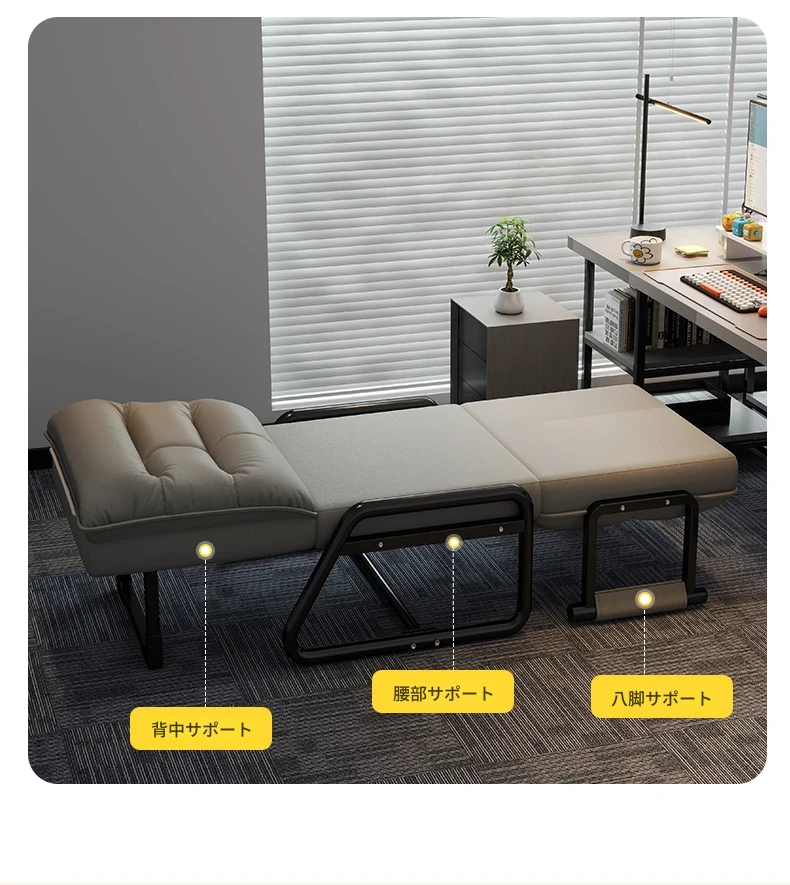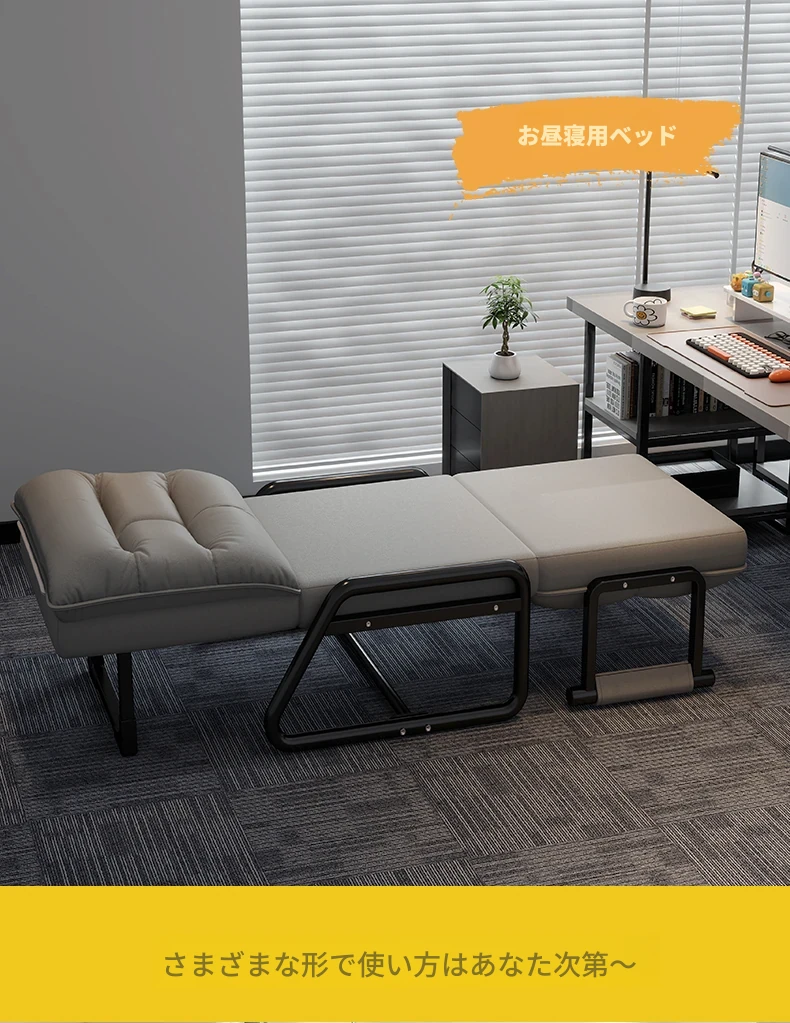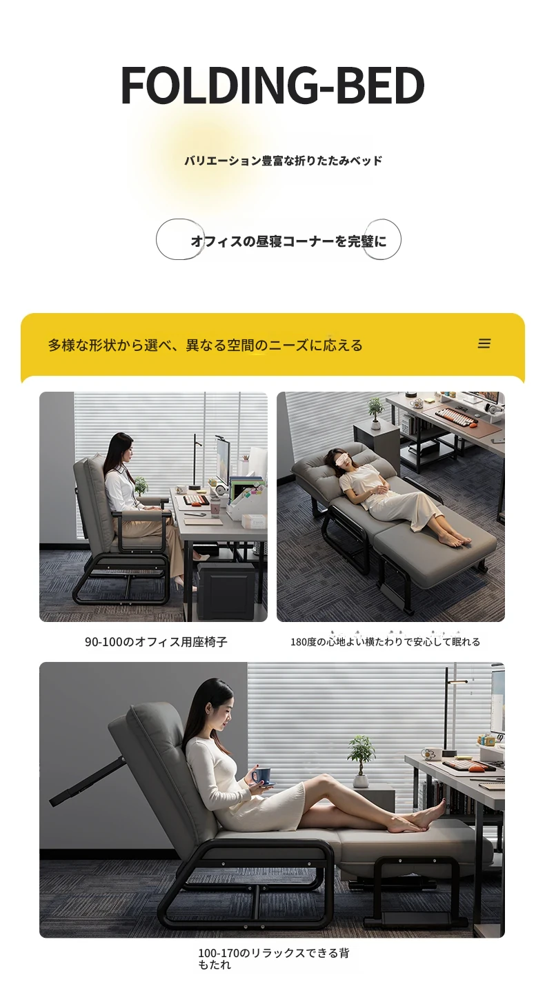 2way折りたたみベッド|オフィス用お昼寝ベッド|シングルサイズのリクライニングソファ|座れる&横になれる|快適なコンピュータ折りたたみチェアで、リラックスした昼休みを!