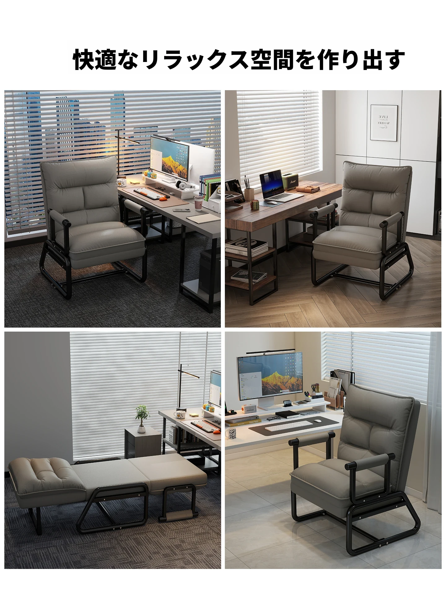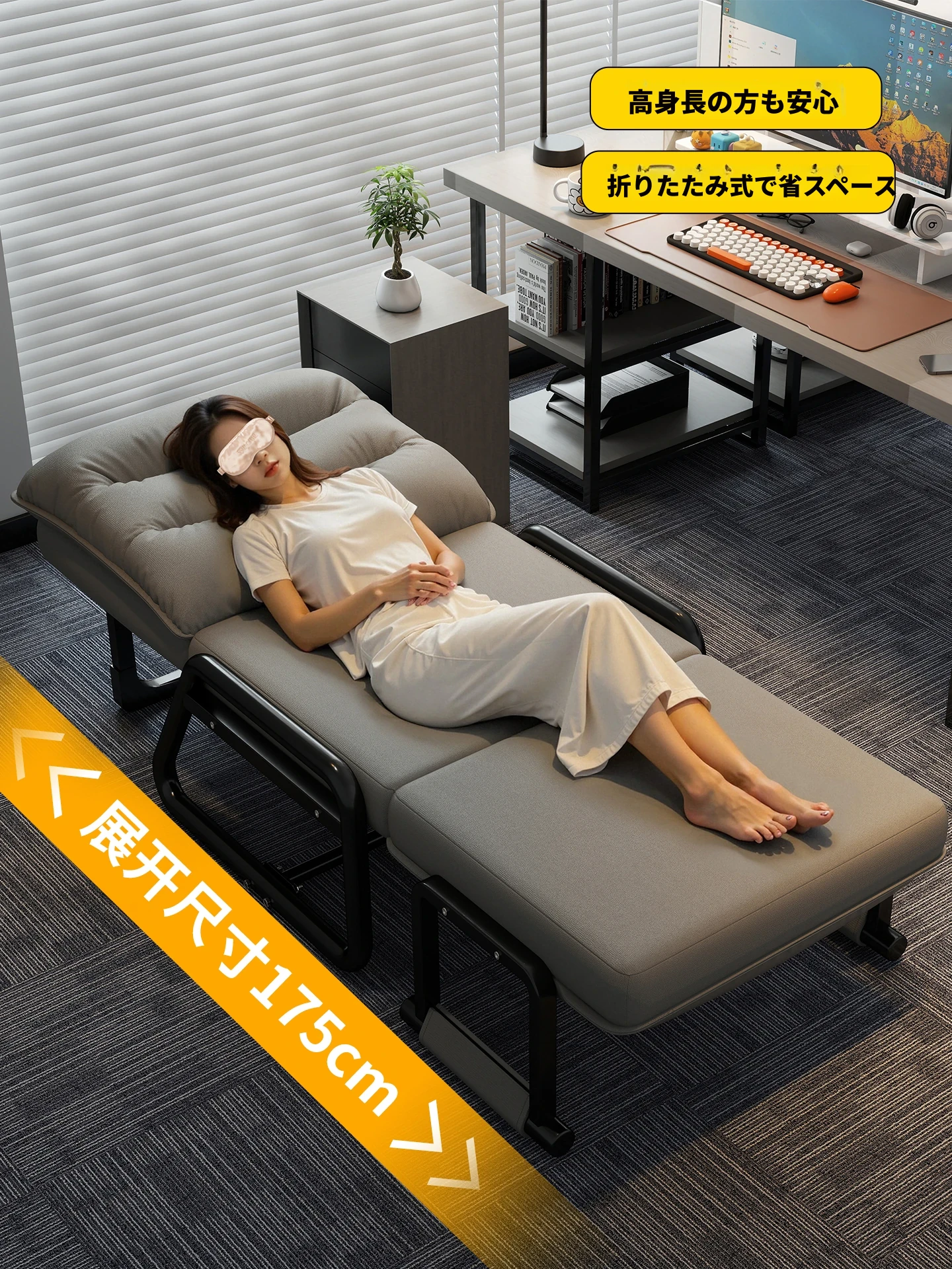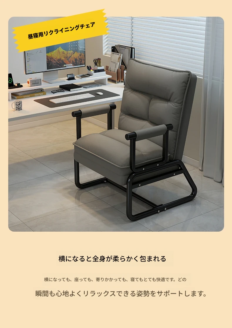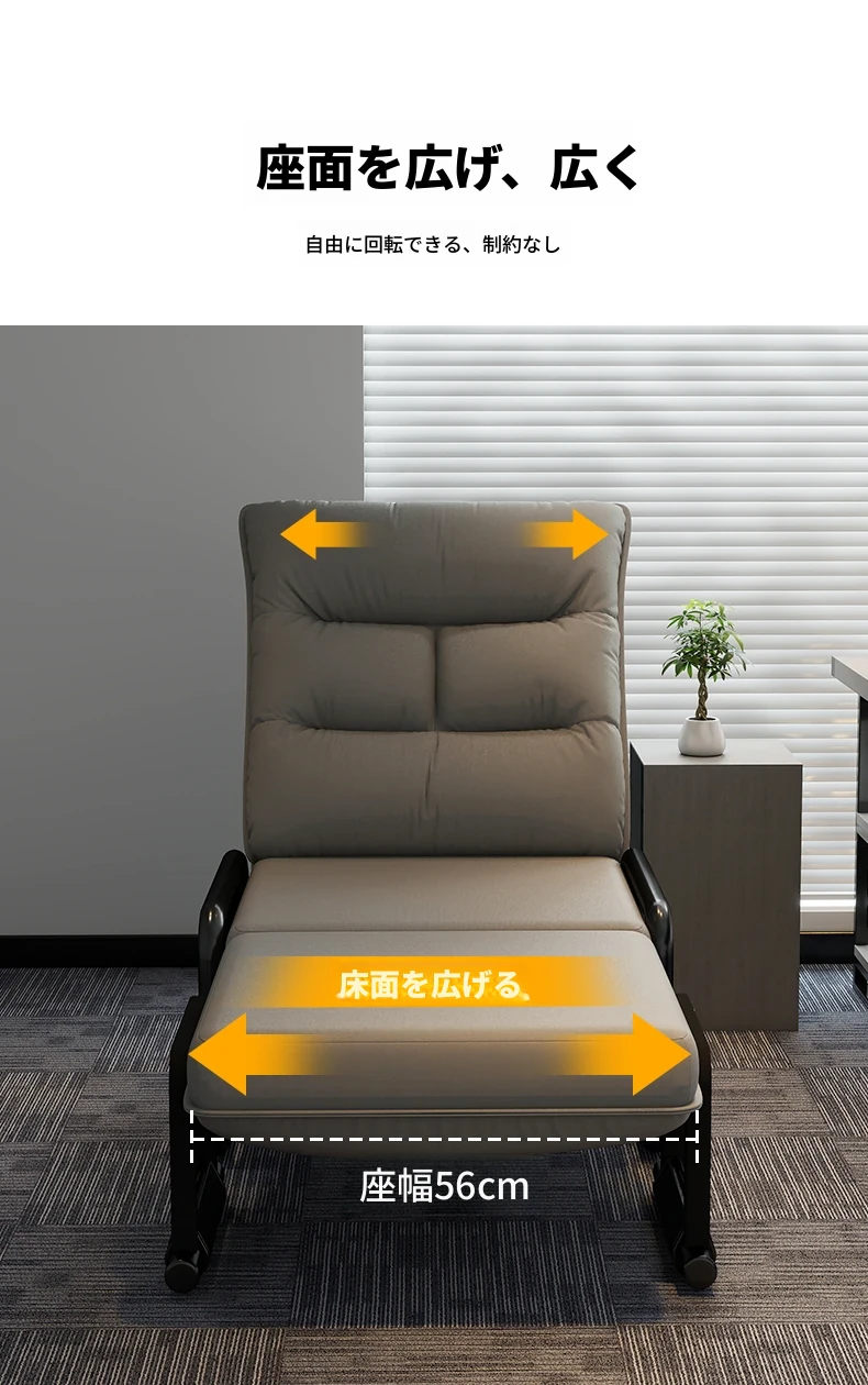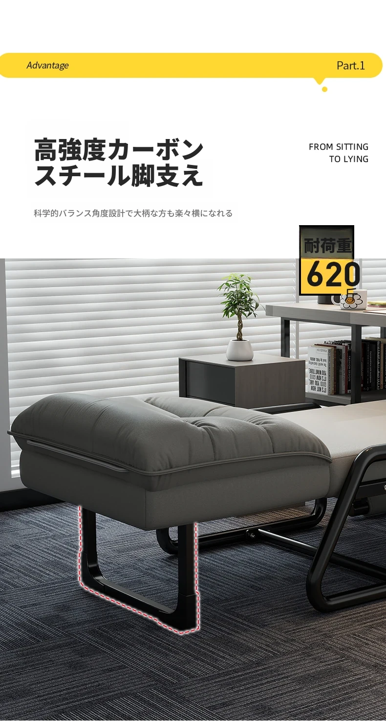 2way折りたたみベッド|オフィス用お昼寝ベッド|シングルサイズのリクライニングソファ|座れる&横になれる|快適なコンピュータ折りたたみチェアで、リラックスした昼休みを!