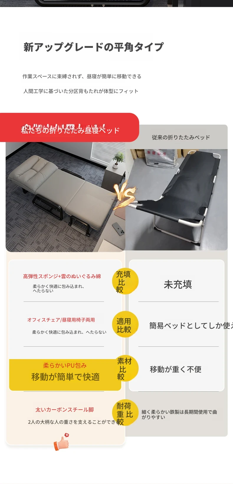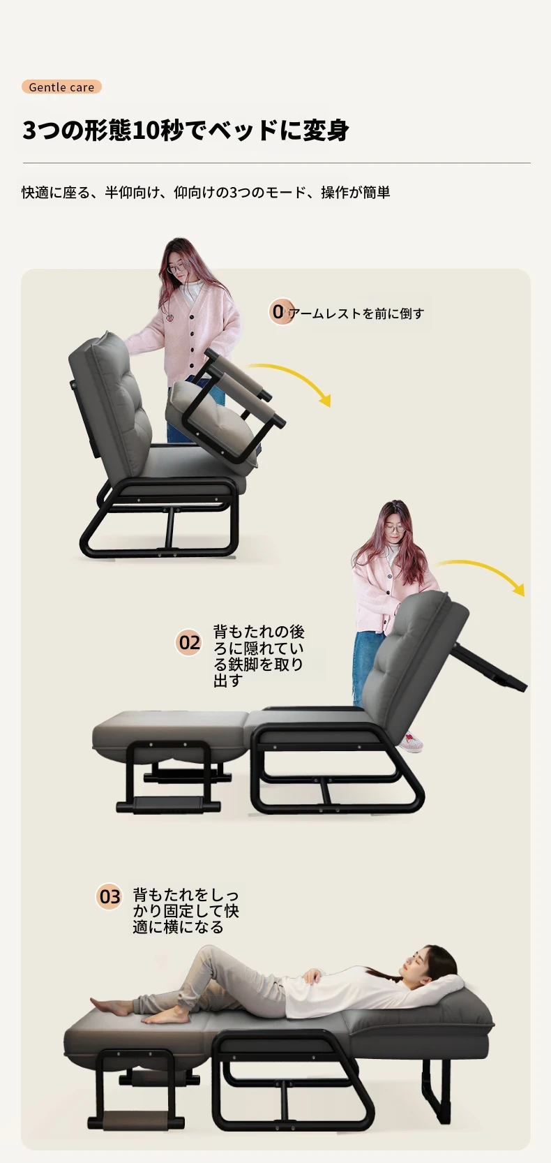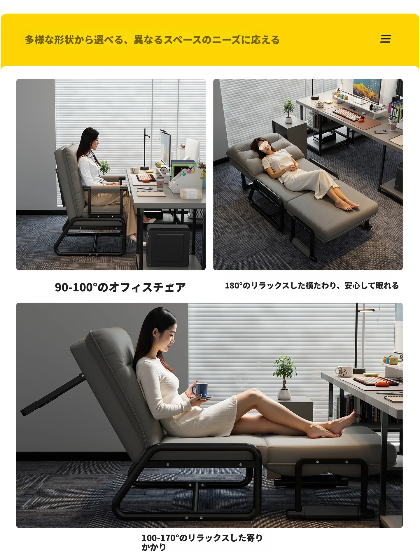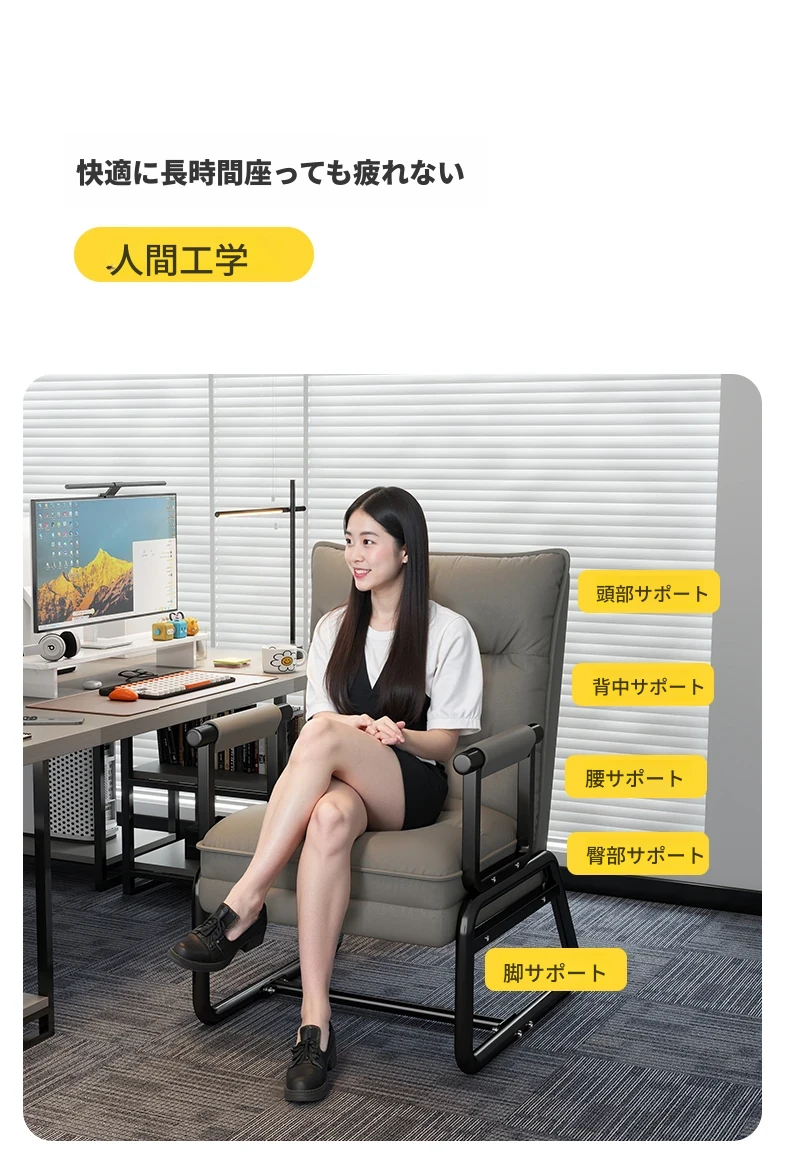 2way折りたたみベッド|オフィス用お昼寝ベッド|シングルサイズのリクライニングソファ|座れる&横になれる|快適なコンピュータ折りたたみチェアで、リラックスした昼休みを!