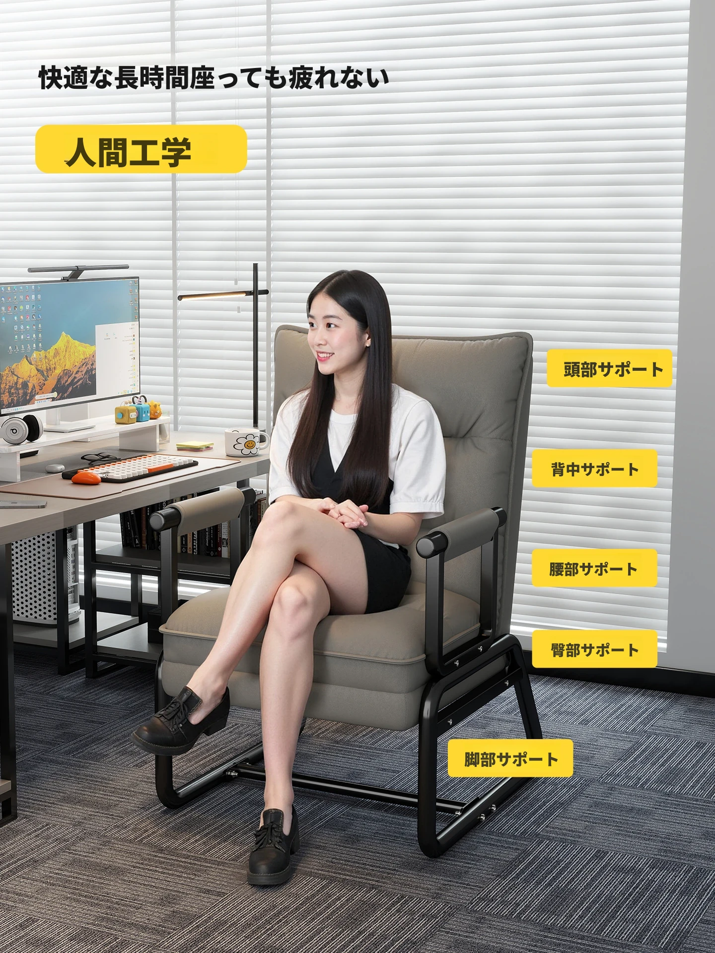 浅灰【背もたれ5段調整】