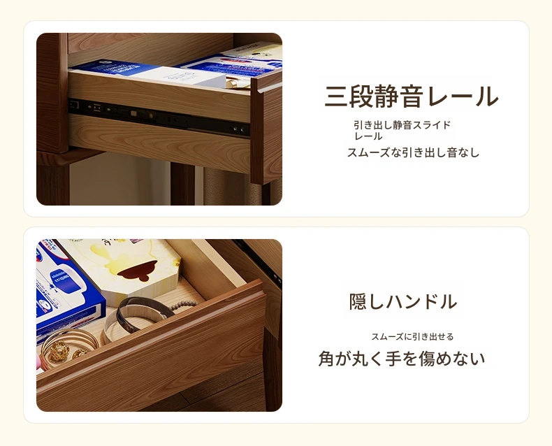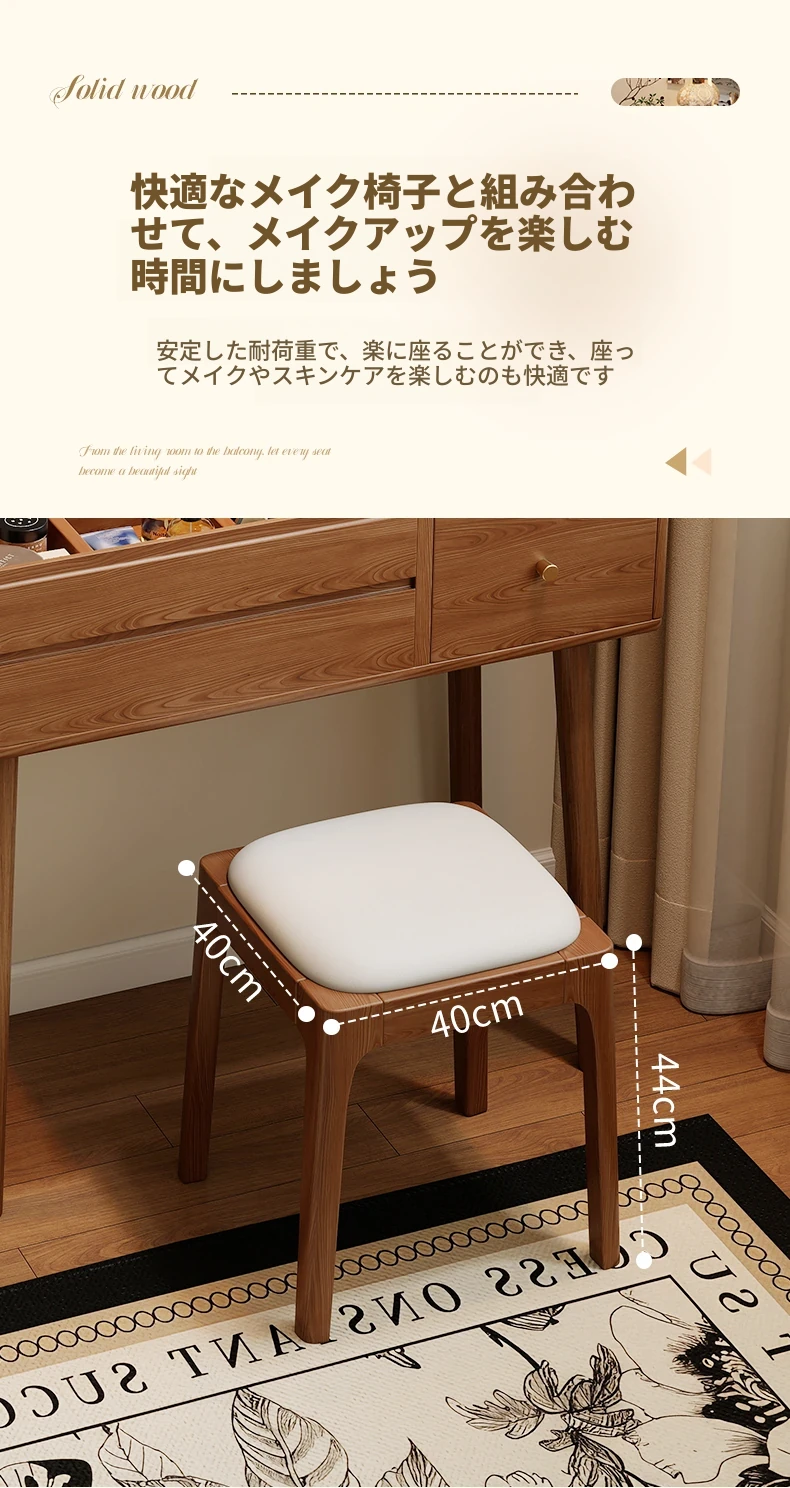 【全木製 取り付け込み】ナチュラル色 - 単テーブル+ドレッシングスツール