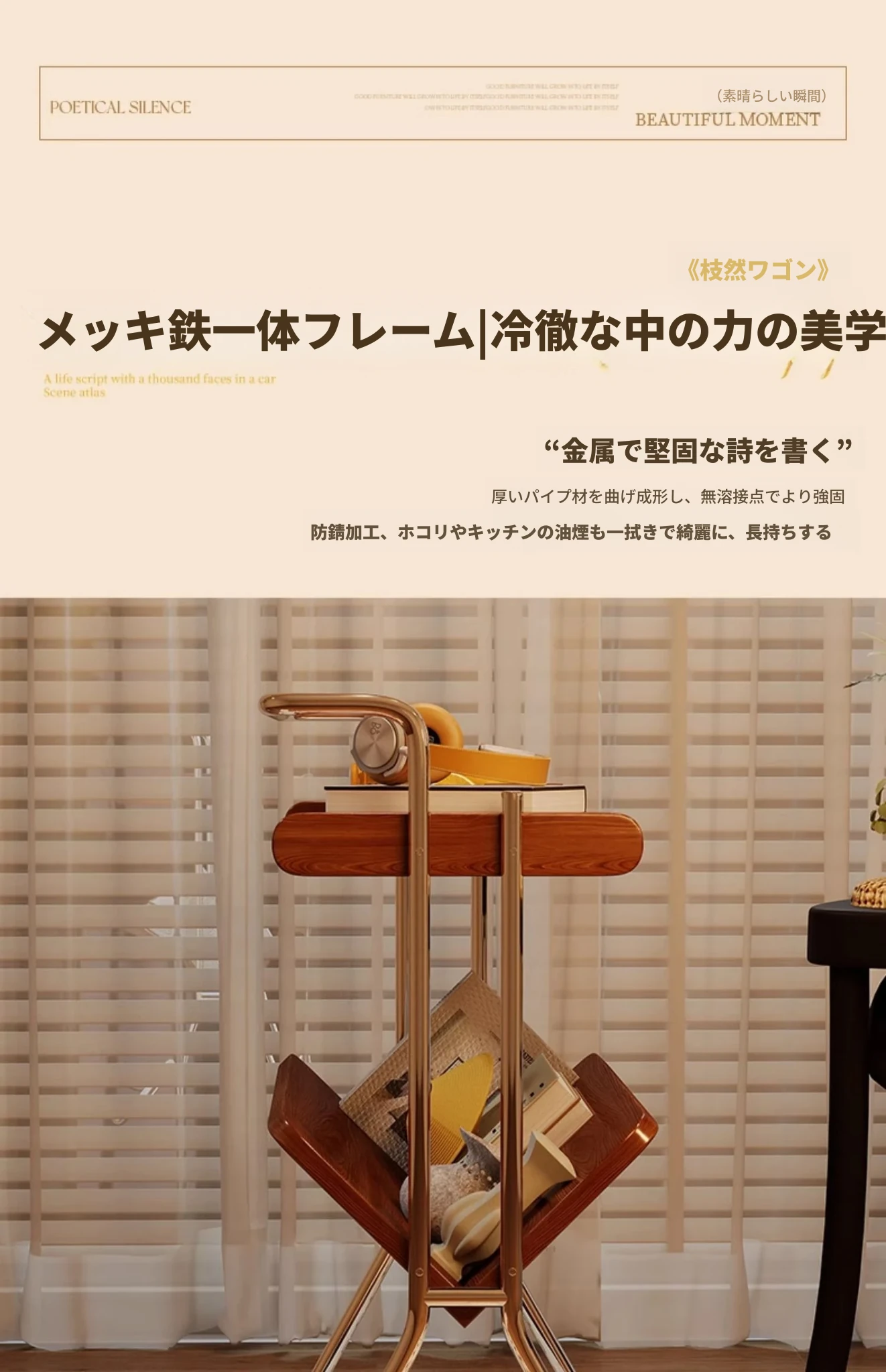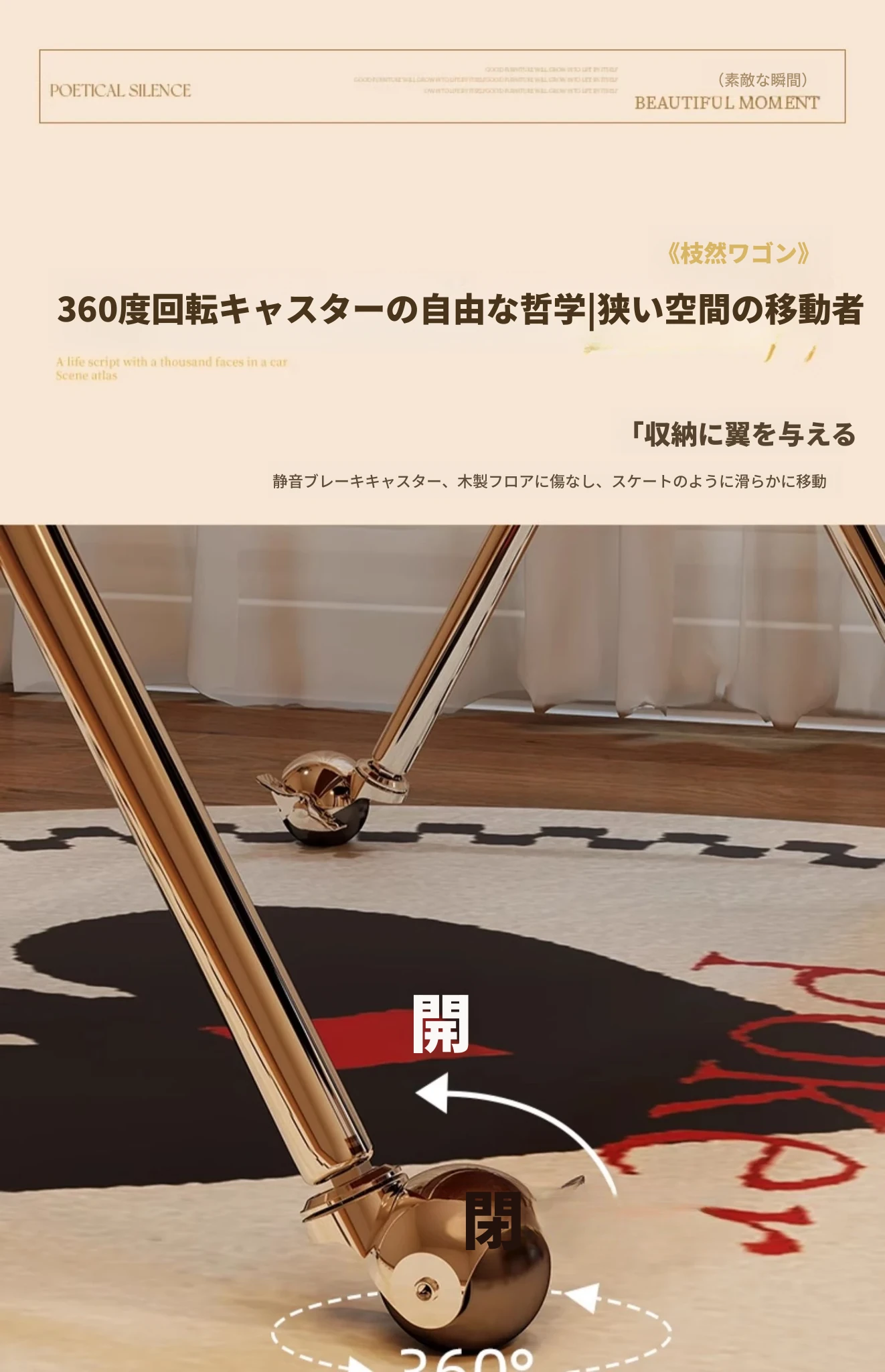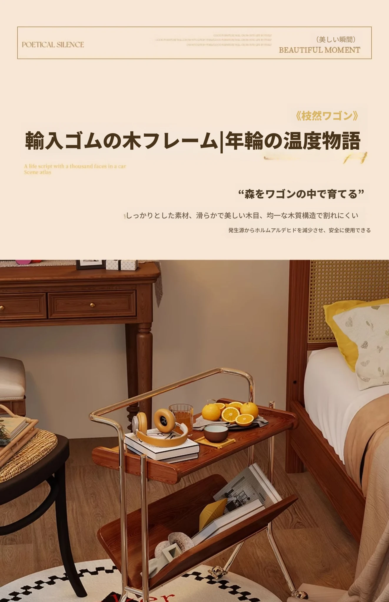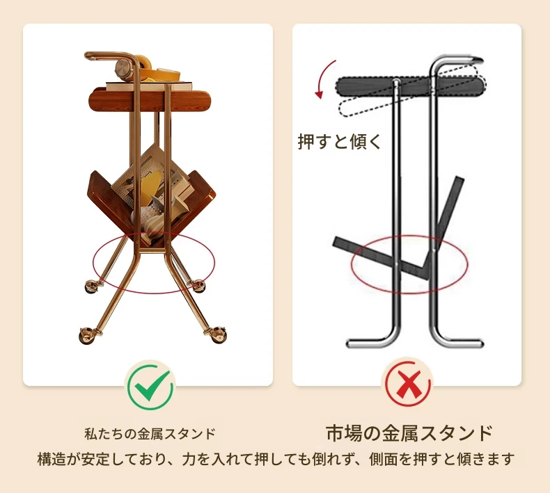 ナチュラル色【輸入ラバーウッド】キャスター付き