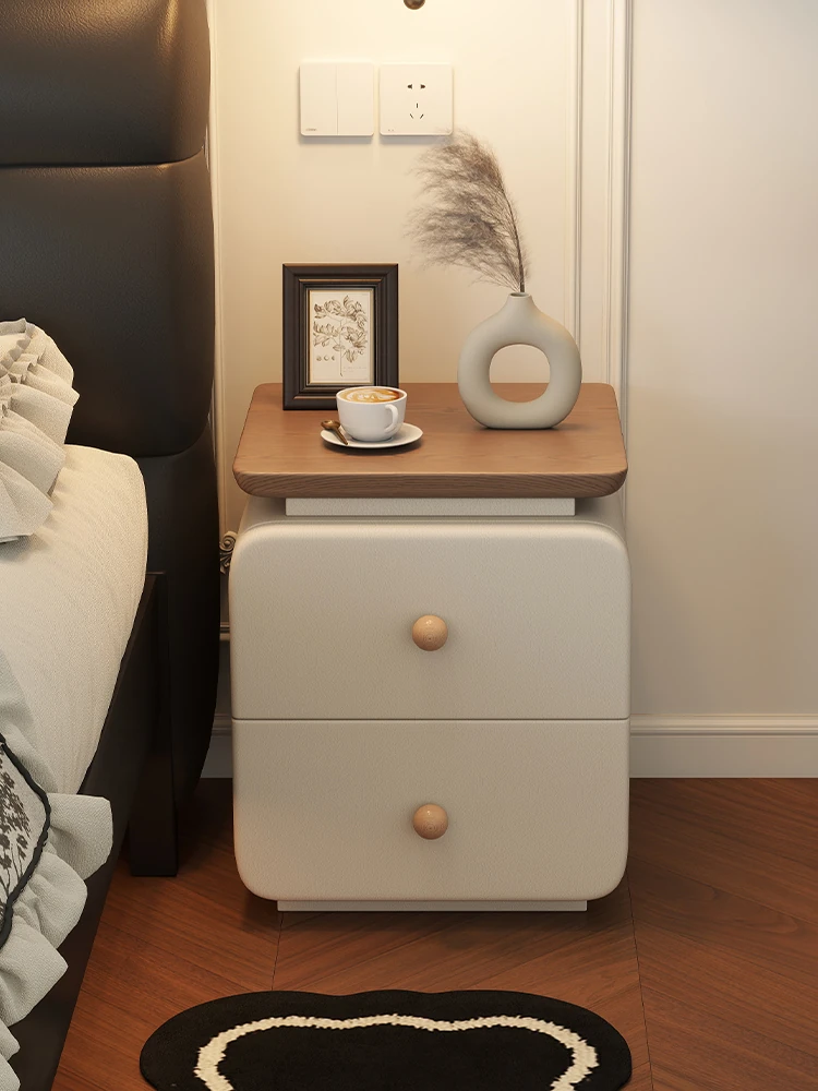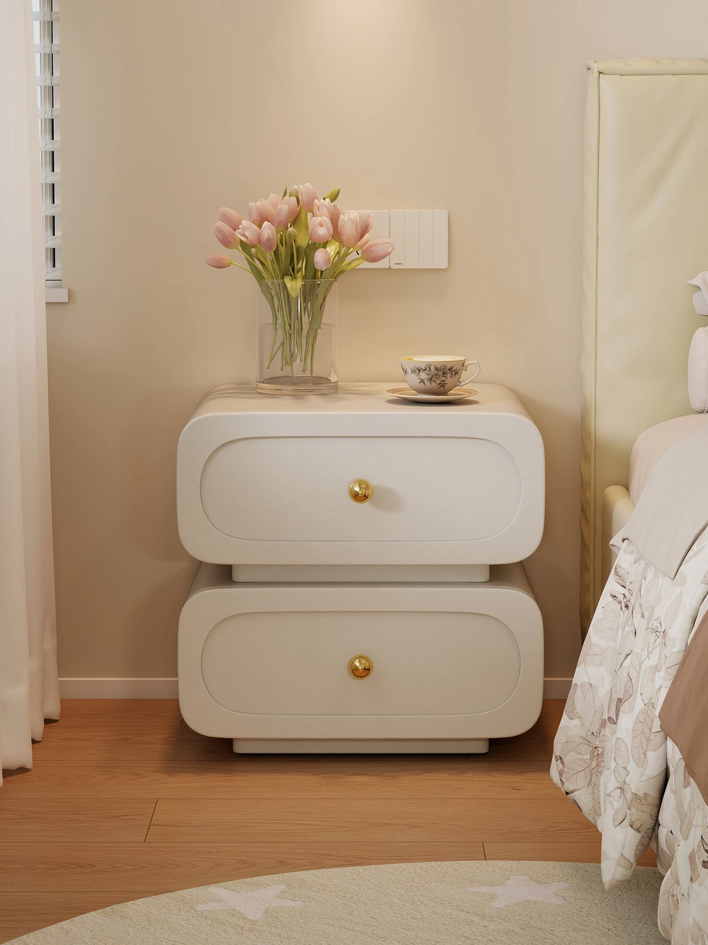 ミニマリスト風の軽やかなラグジュアリー実木ナイトテーブル|フレンチスタイルのベッドサイド収納キャビネット|クリーミーカラーの小型ストレージ|おしゃれで機能的な寝室に最適!