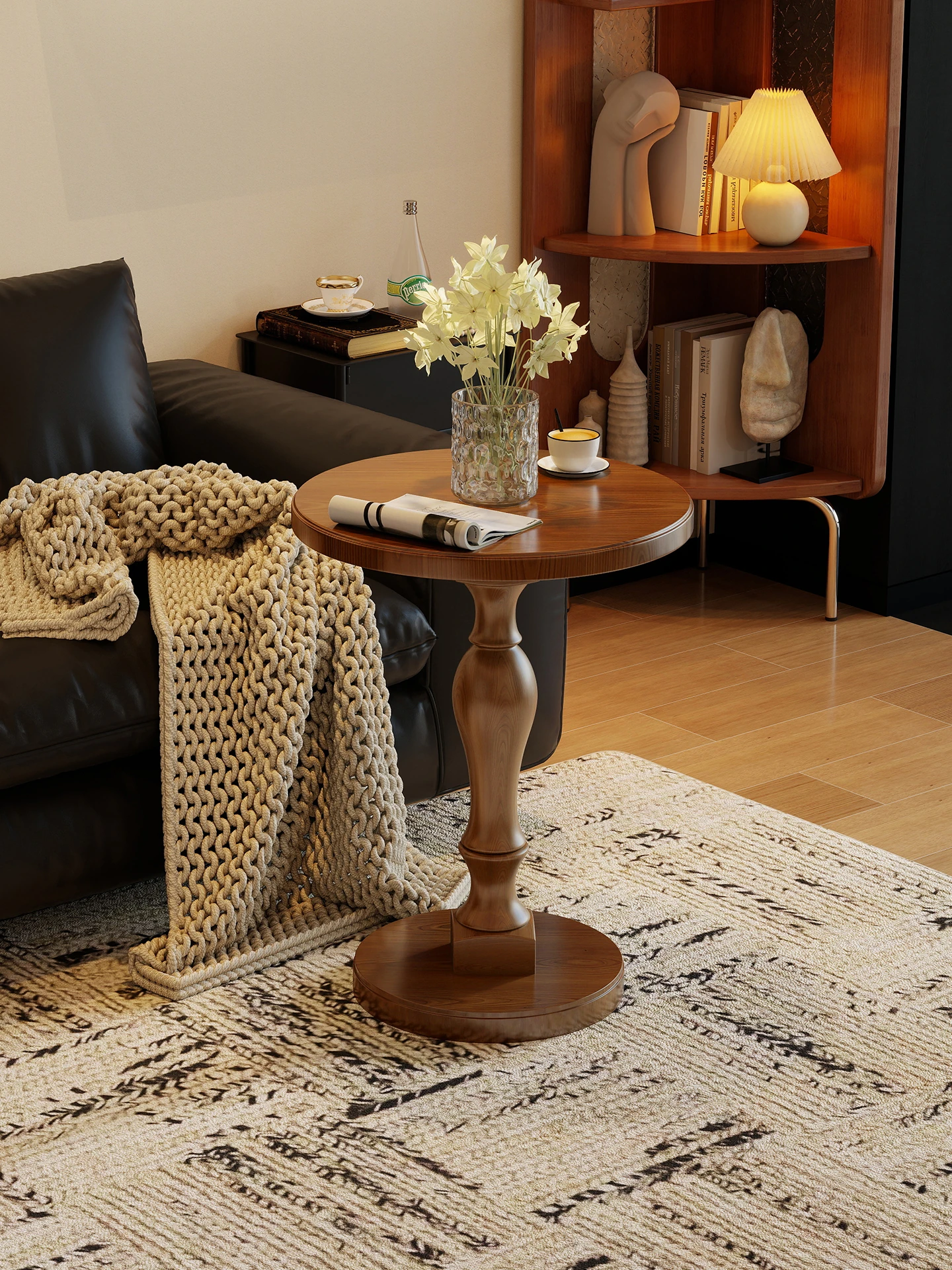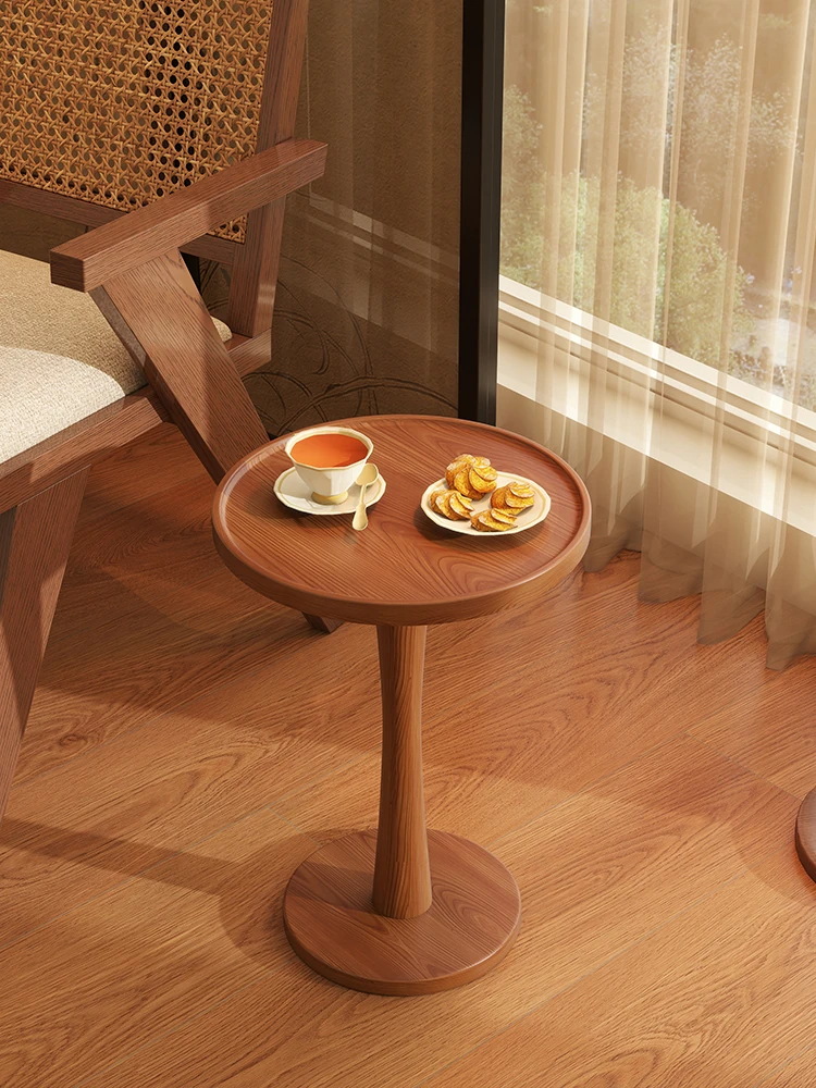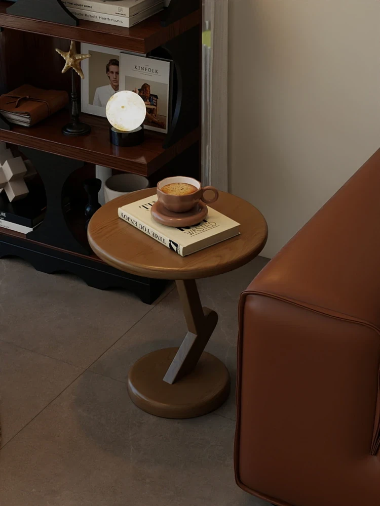 無垢材のアンティーク風ソファサイドテーブル - 小型リビングやバルコニーに最適!移動可能で、クリエイティブなデザインの小さなティーテーブルやコーナーテーブルとしても使える。おしゃれで実用的なインテリアアイテム!