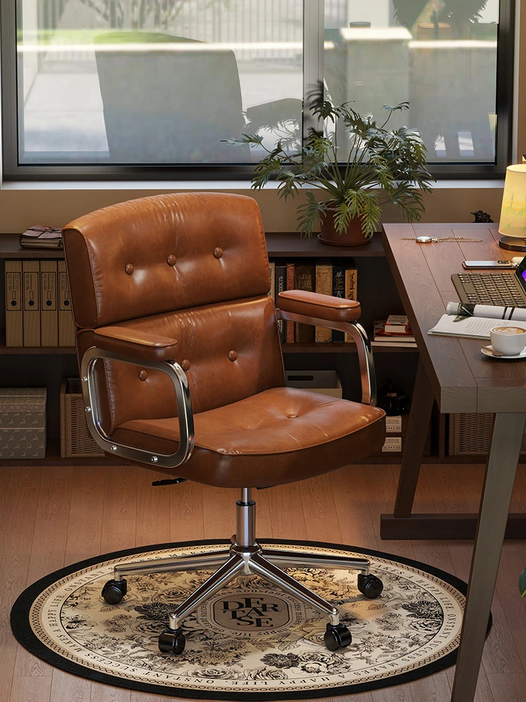ラグジュアリーなヴィンテージデザインの快適なパソコンチェア|自宅での長時間座りにも最適な書斎用オフィスチェア|寝室や化粧時にも使える回転式バックレストチェア