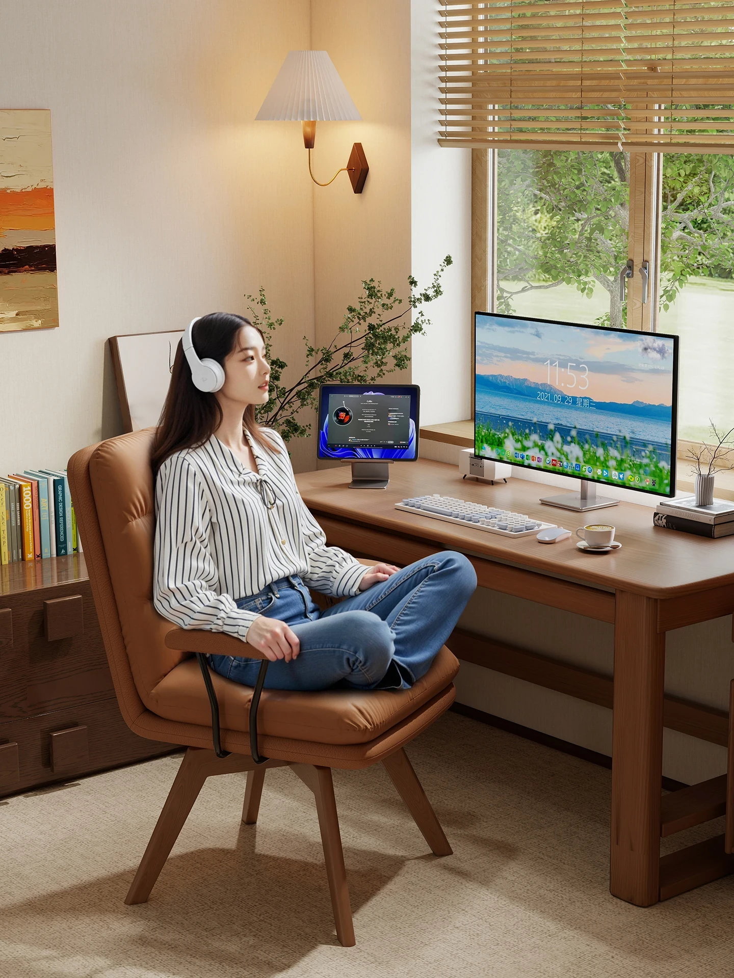 高級感あふれる無垢材製のパソコンチェア!書斎やオフィスに最適、快適な背もたれで長時間の作業も楽々。高齢者にも優しい設計で、ビジネスシーンにもピッタリな上質な座椅子です。