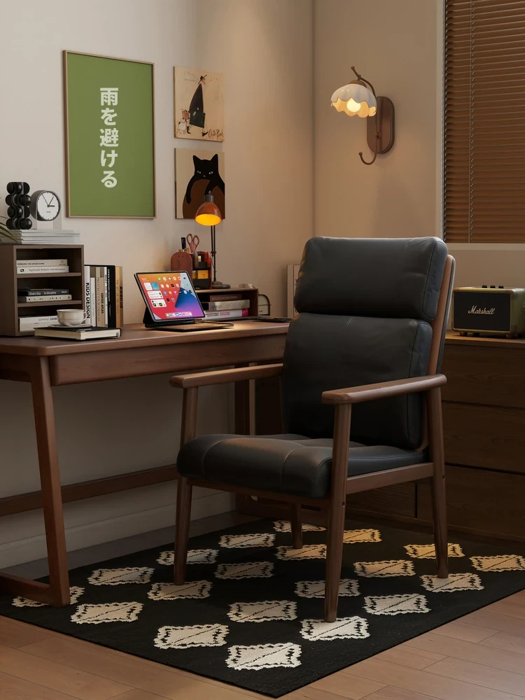 軽やかな高級感!回転式のレトロデザインの木製チェア。快適な座り心地で、書斎や寝室にぴったりの家用パソコンチェア。長時間座っても疲れにくい、スタイリッシュな一品です。