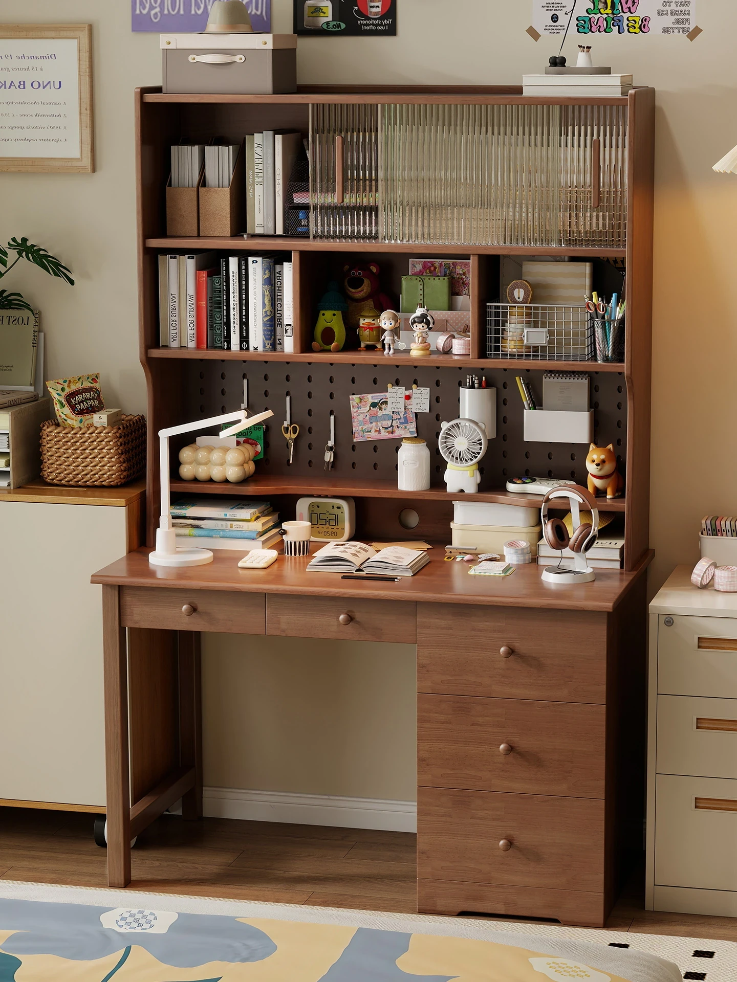 実木製キャビネット付きデスク&ラック一体型!穴あきボードで収納力抜群の学習デスク。中高生に最適な書きやすさと、家庭用パソコンデスクとしても大活躍!勉強が楽しくなるおしゃれなデザイン。