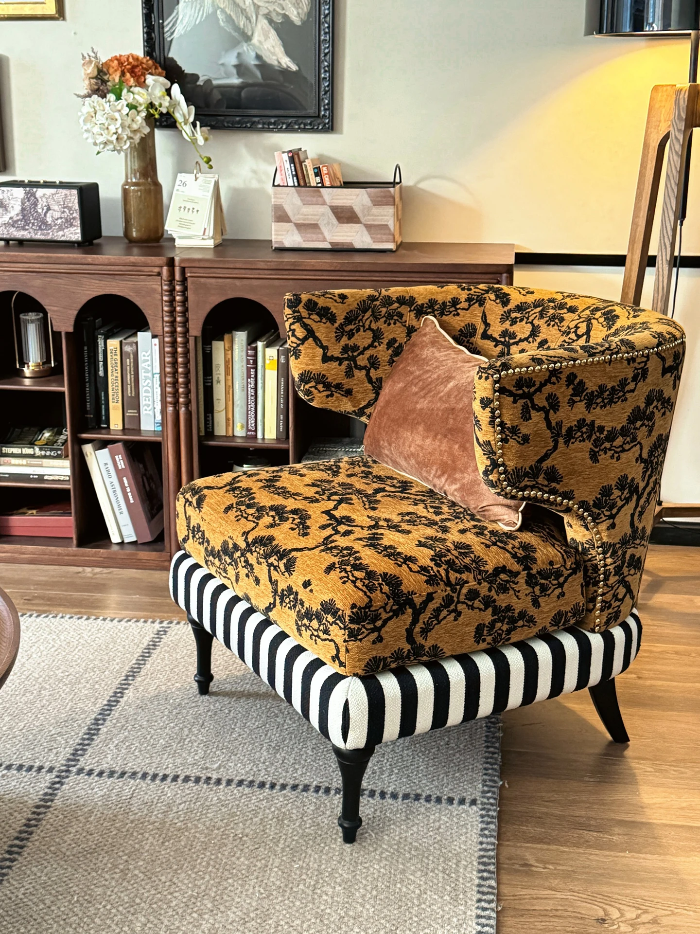 回転式パソコンチェア|自宅用・女の子向け|快適な座り心地|長時間の作業も楽々|天然木足のソファチェア|リラックスできる背もたれ付き!