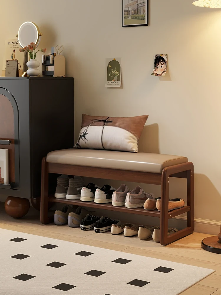 中古風の玄関用スツール、実木製の靴脱ぎ台。小型住宅に最適!入居時に便利なスリムな靴棚と快適なソフトパッド付き。あなたの玄関をスタイリッシュに演出します!