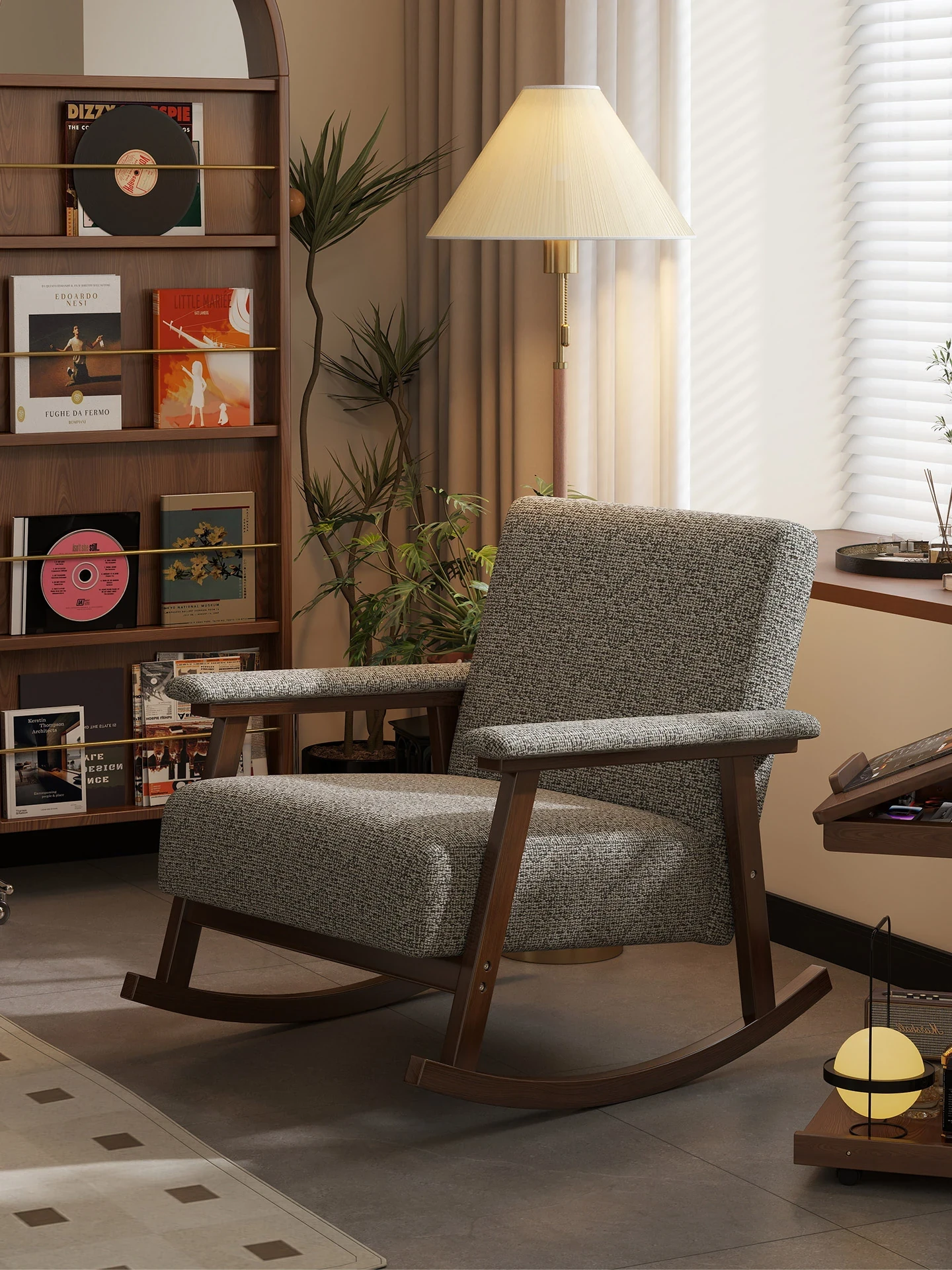 レトロな無垢材のロッキングチェア|リラックスできるダイニングルームやバルコニーにぴったりな一人用ソファ|おしゃれで快適なひとときをお届けします!
