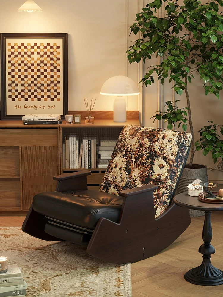 【実木レトロロッキングチェア】大人用リクライニングチェア、リビングやバルコニーに最適!アメリカンヴィンテージスタイルの一人掛けソファで、くつろぎのひとときを演出します。高品質な素材で耐久性も抜群!