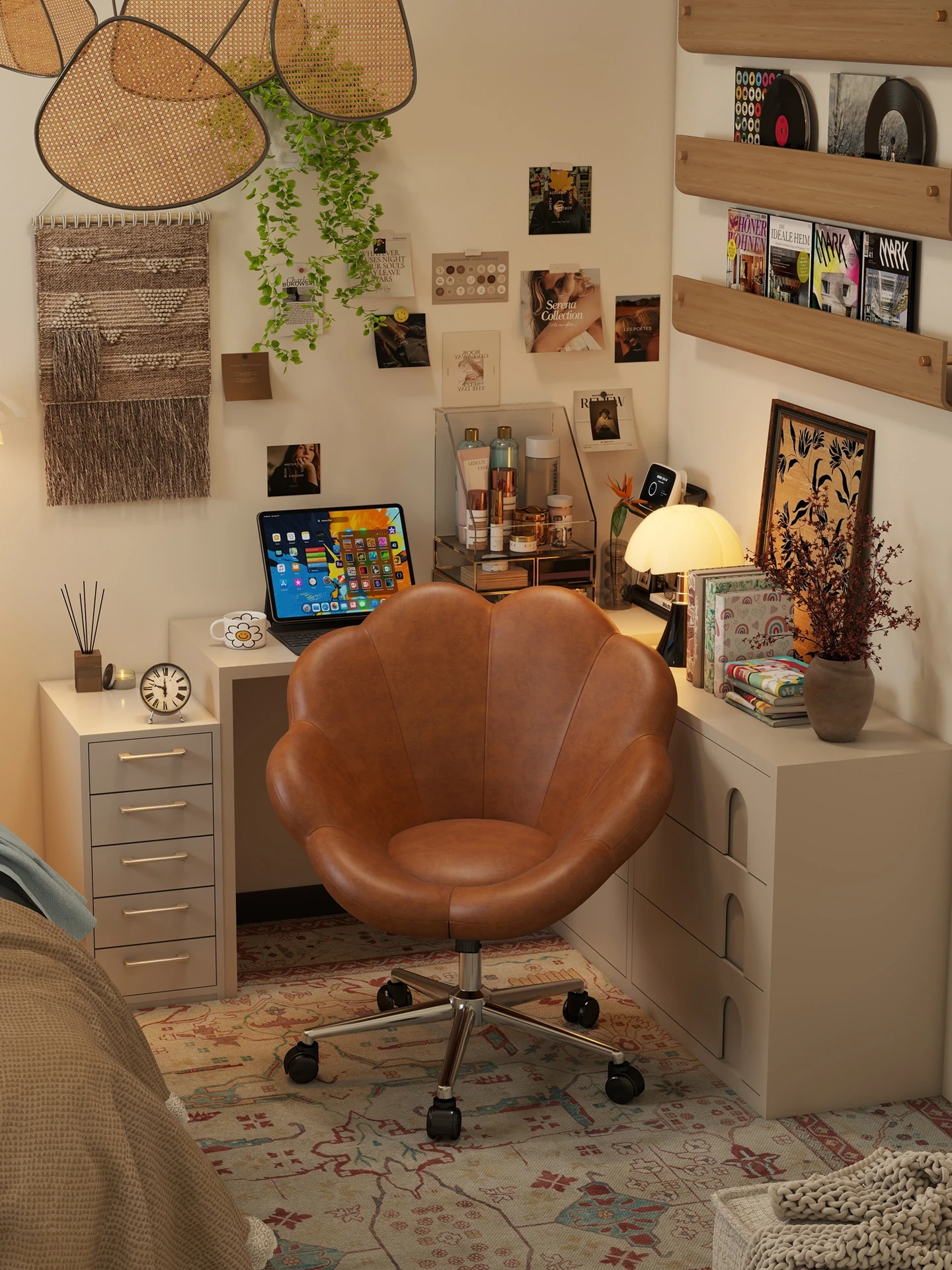 高級感溢れる快適なオフィスチェア|長時間座っても疲れない!女の子のメイクにも最適な寝室用椅子|書斎やデスクにぴったりの背もたれ付きチェア