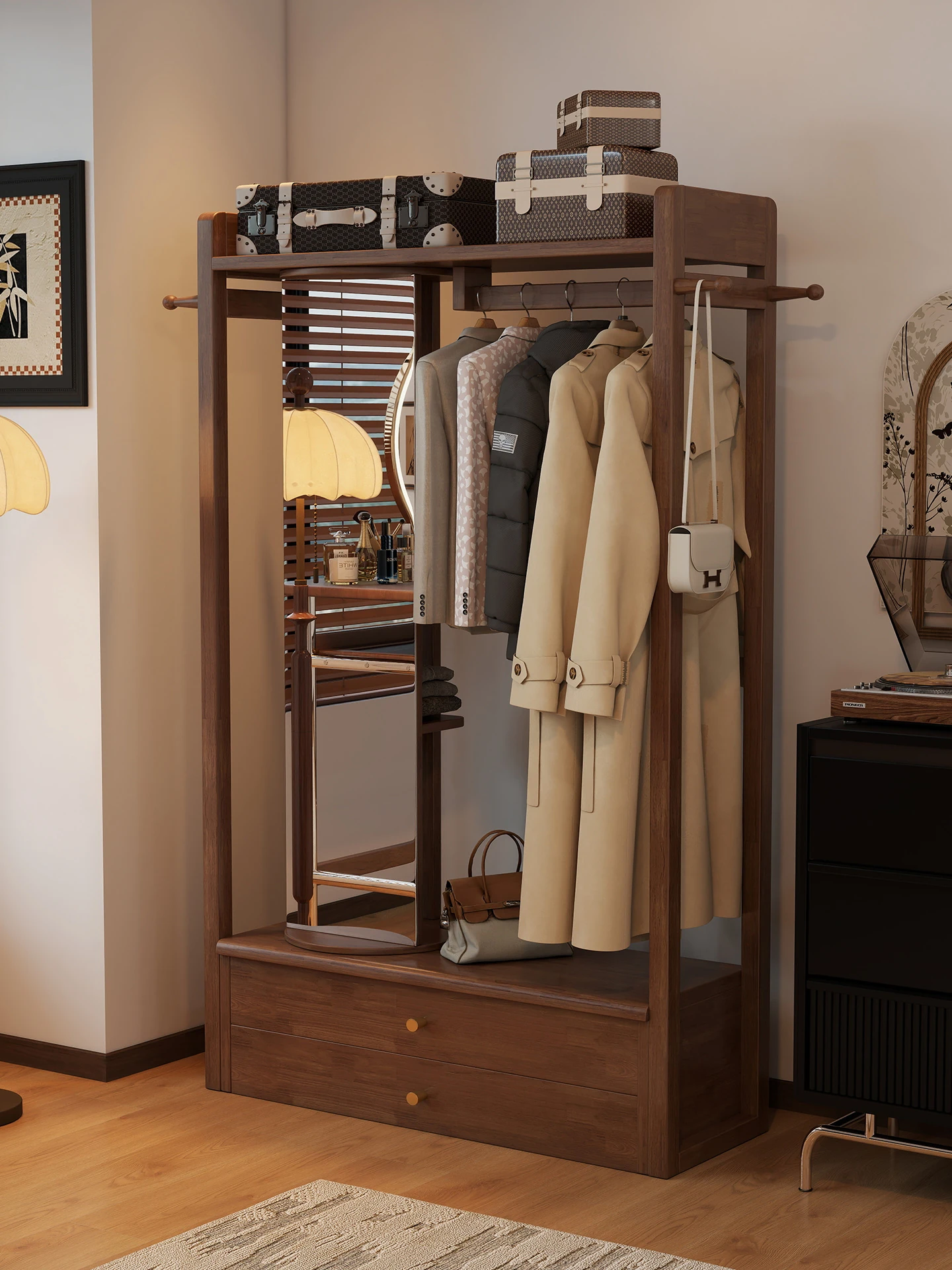 アンティーク風の無垢材コートハンガー&全身鏡一体型、家庭用ベッドルームに最適!機能的でスタイリッシュなフロアスタンド式のマルチハンガー、衣類を美しくディスプレイします。