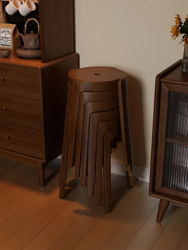 天然無垢材のスタッキングダイニングスツール|家庭用・レストラン用に最適|軽量で持ち運び便利|シンプルなデザインの円形スツール|風車型デザインでおしゃれな空間を演出!